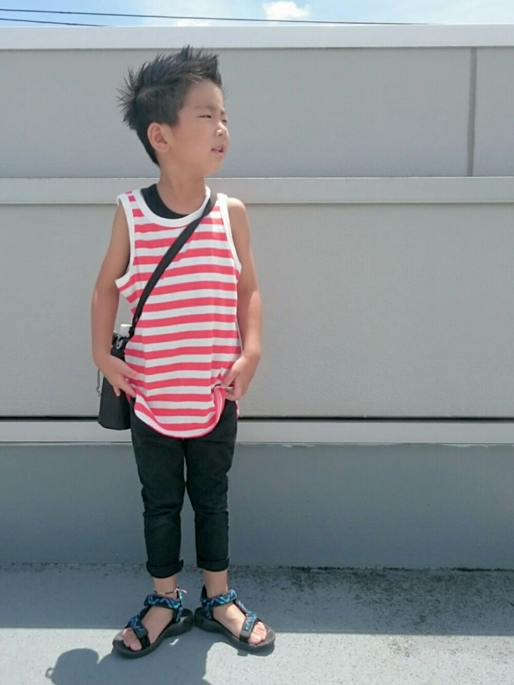 おしゃれキッズがみんな着ているタンク🎽 買っちゃった❤ かわいい❤かわいい❤かわいい❤ 1サイズ小さくても良かったかな😊  ♪  ♪  ♪ 見ていただきありがとうございます❤