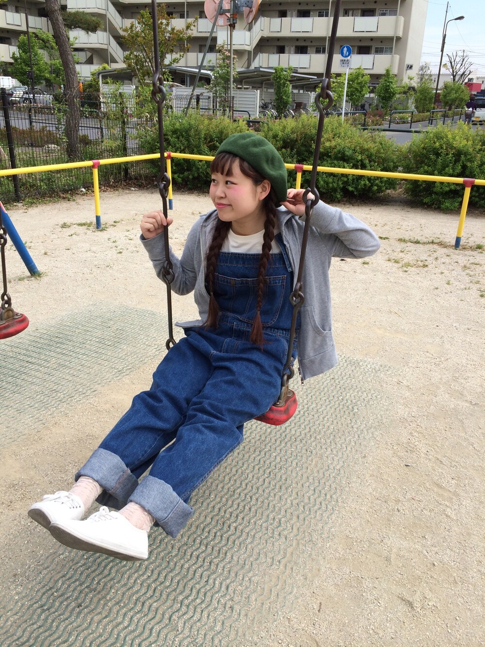 ♩ 画家さんコーデ!!アーティスティック!(笑) ベレー帽かわいくってだいすき♡ ベレー帽でレインボー作れるくらい 集めたいな!!♡黄色とか!! このオーバーオール、そのへんの おしゃれオーバーオールと違って、 本当に工具入れられるように ポケットや飾りがついているの! あきはそーいうところに 変なこだわりを持っています(笑) このときブランコに久々に乗ったけど あれってなんであんなに 気分わるくなるんだろう(笑) そしてなぜ子どもの頃は 楽しく乗れていたのだろう…!(笑) でも少年みたいな気持ちが芽生えて すこしたのしかったです♩♩ ヘアはただのみつあみです◎ 前髪だけ、薄めの透け感、 束感がほしかったので、 上の層だけとって、ピンで留めてます◎ ベレー帽で隠れちゃうから おっけーなのです(笑) Tシャツ、パーカー:UNIQLO オーバーオール:高円寺の古着屋さん ベレー帽:Fizz 靴:GU