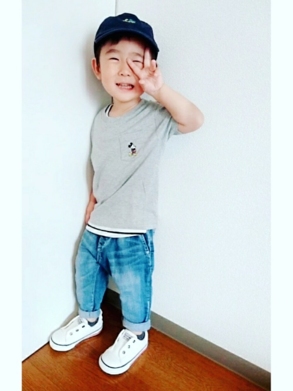 ミッキーT👕×薄色デニム👖 またまたボーダーチラ見せがお気に入り❤️ 見ていただきありがとうございます☺