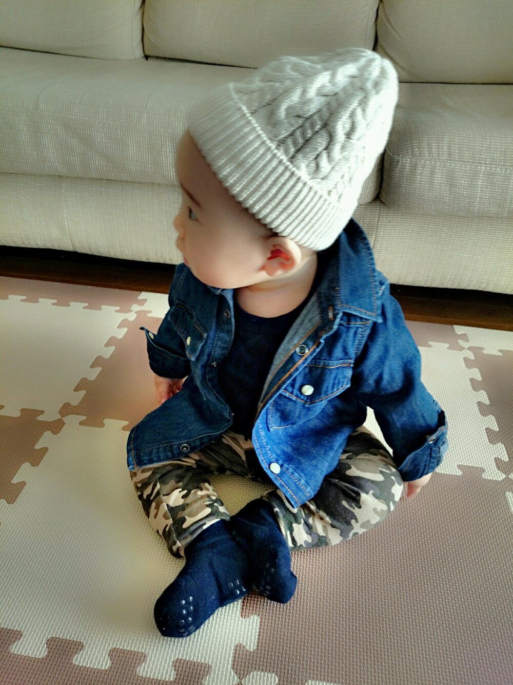 今日はデニムシャツ×迷彩柄(^o^) ユニクロの迷彩レギンス、すごく好きです(^人^)☆