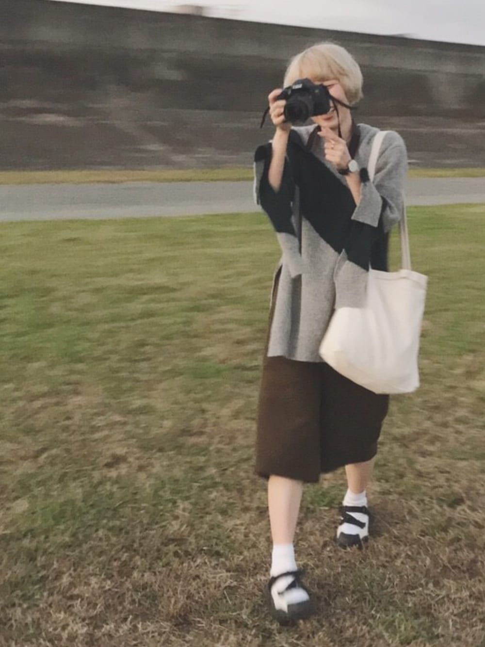 作業はしづらいけど袖が切れてるニットお気に入り。昼の太陽光で夜になるとぼやんと光るnejicommuの腕時計もお気に入り☺︎ 大阪をぶらりした日🚶