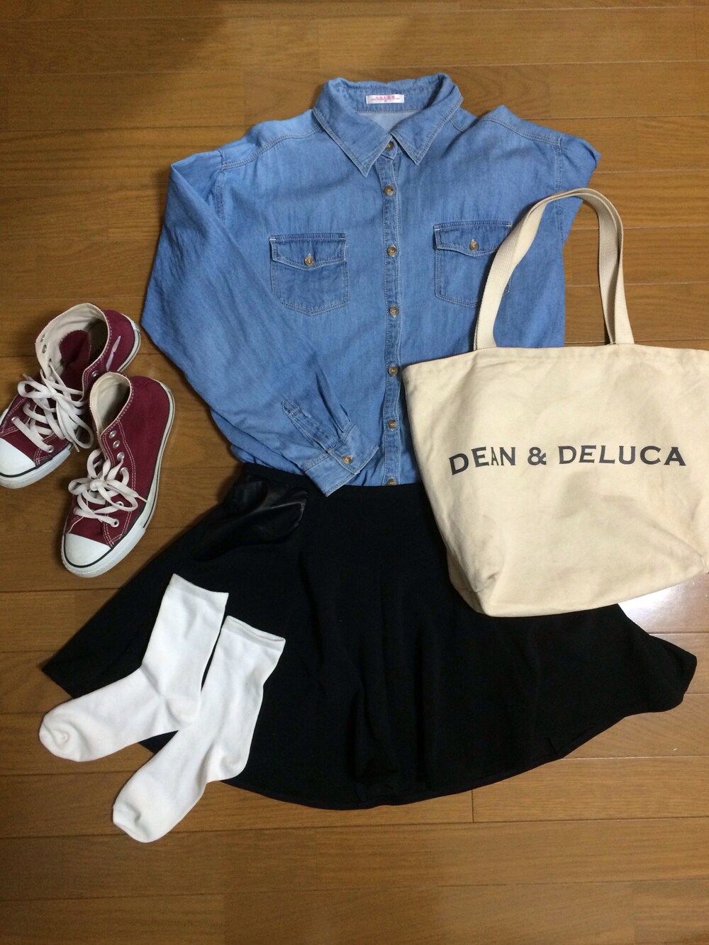 トップス:ハニーズ スカート:イーハイフン シューズ:コンバース 明日友達とお買い物に行きます☻ よって、歩き回れるスニーカーコーデ! これにニット帽をonすれば完璧です(笑)