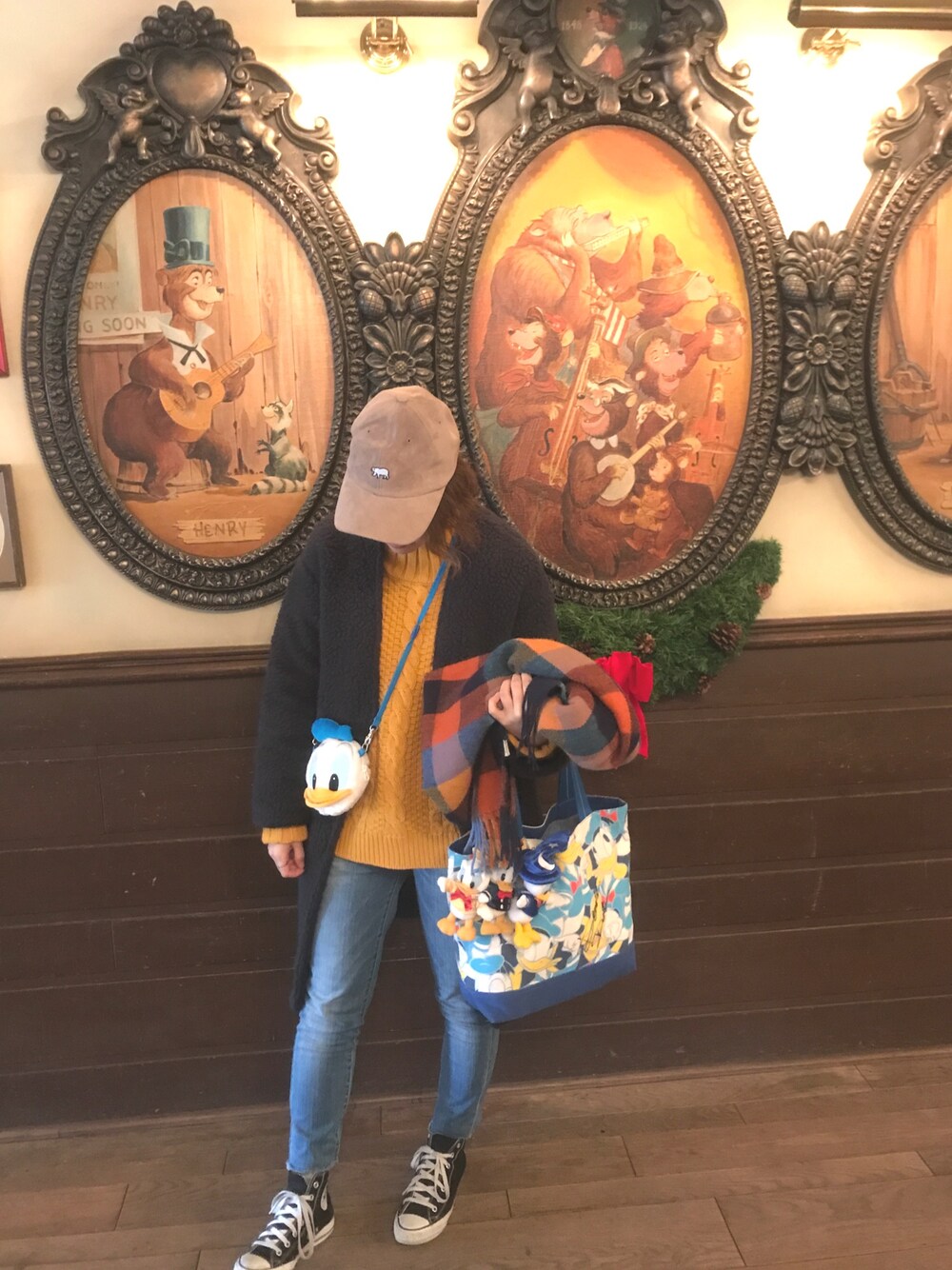 1日目 ディズニーランドコーデ クリスマス楽しんできました🙌 ドナルドが大好き♡ カバンをメインにしたかったので ドナルドカラーをイメージしてイエローとブルーでシンプルに𓅸𓅿𓅹