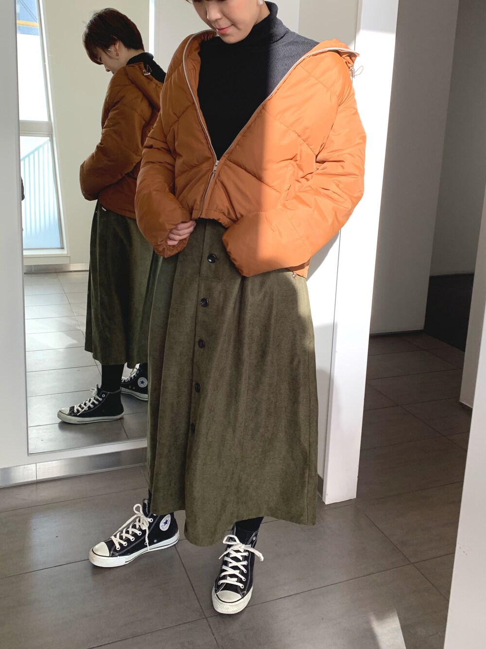 ダウンコートを買いました🙌 最近すごく寒くなってきたので大活躍!!!!! 軽くて肩こらないの大事😭 スカートも柔らかくてシワ気にせず履けるのがお気に入りです😋