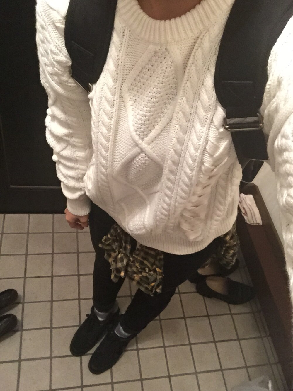 このニットのサイズ感、ちょっとメンズっぽくてめっちゃお気に入り。 カスタネのチェックシャツは大学時代から毎年着てるかなり使えるアイテムです。