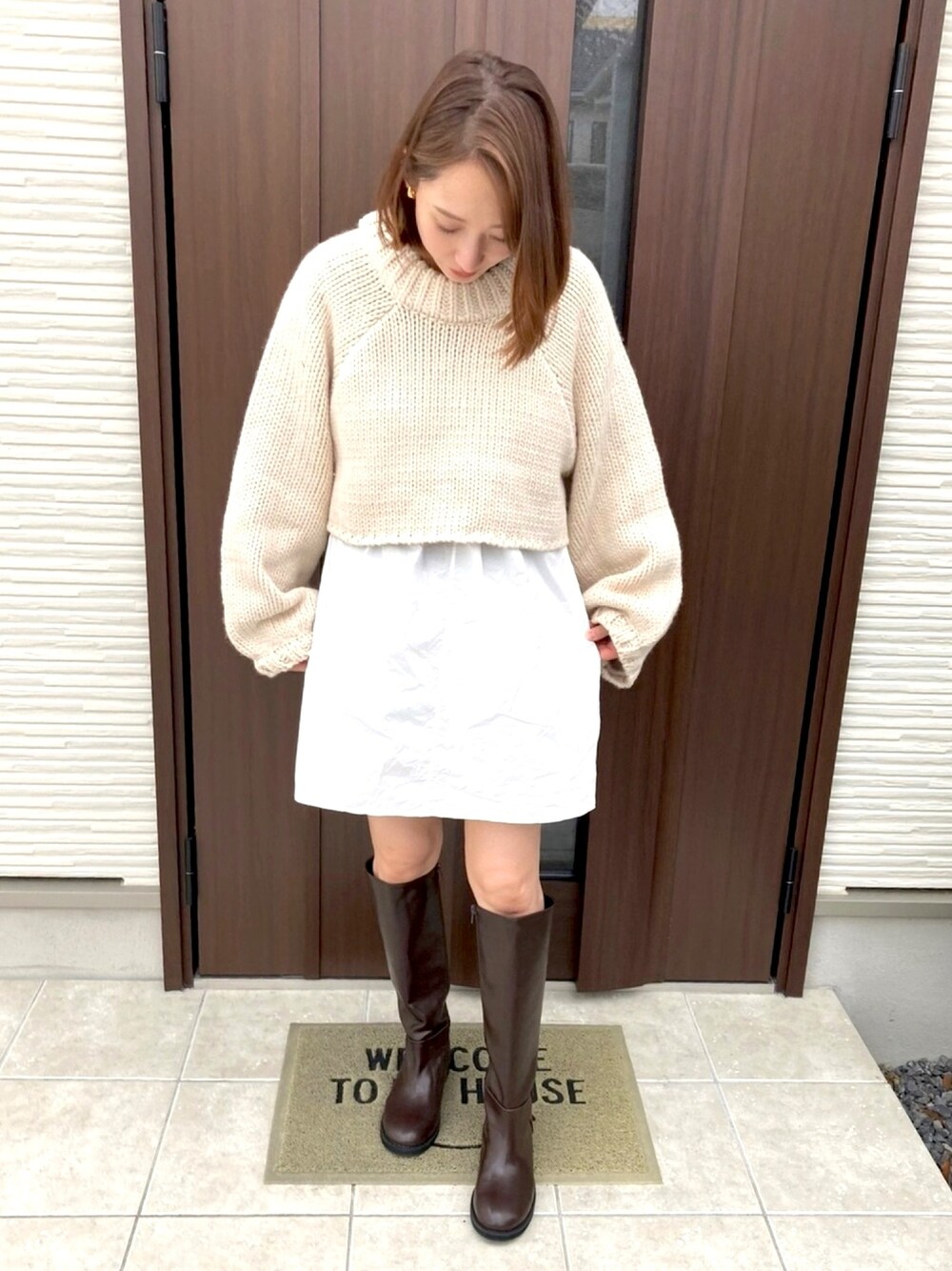 akoのニット/セーター「バックリボンショート丈ニット×チュニックブラウス」を使ったコーディネート