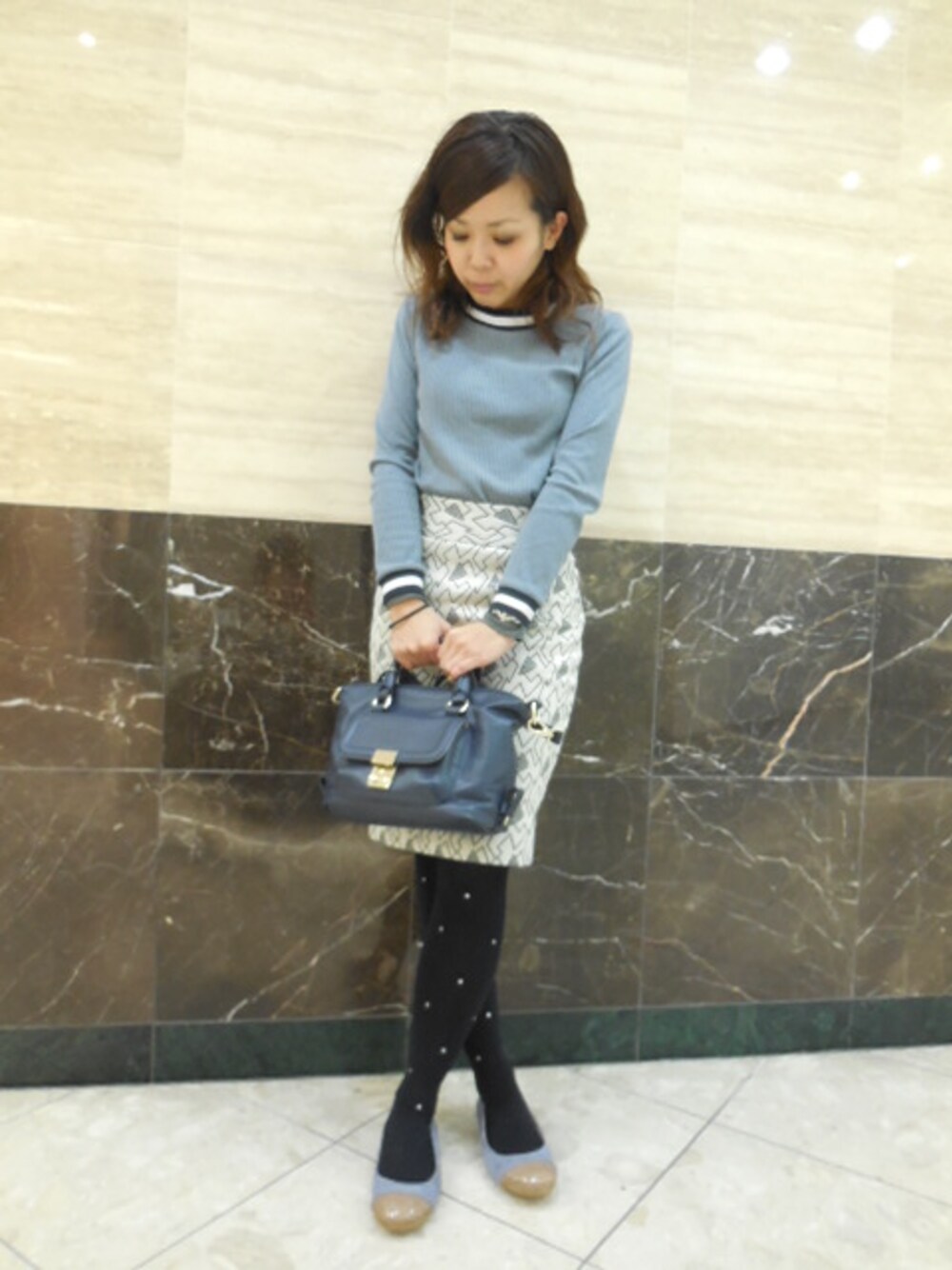 膝丈のスカート合わせで女子力UP! ペタンコでもスカート合わせだとカジュアル感なく履けますよ!!
