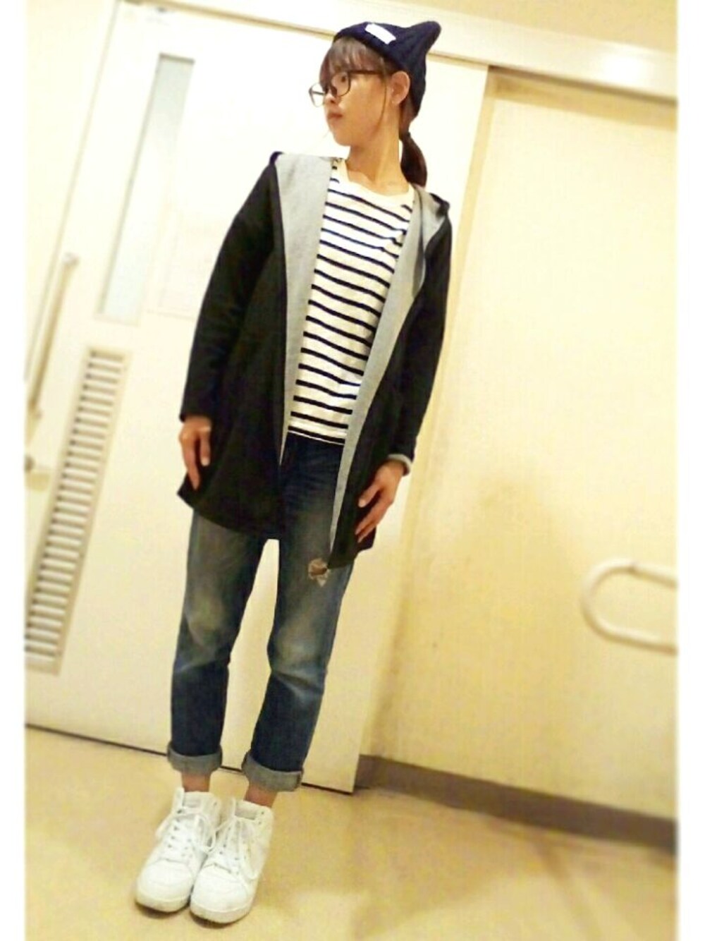 ヒラキで白のハイカットスニーカー届いた\(^o^)/ 写真撮ってたら携帯落として全体的に画面がひび割れ… 新しいの買おうかな(TOT)