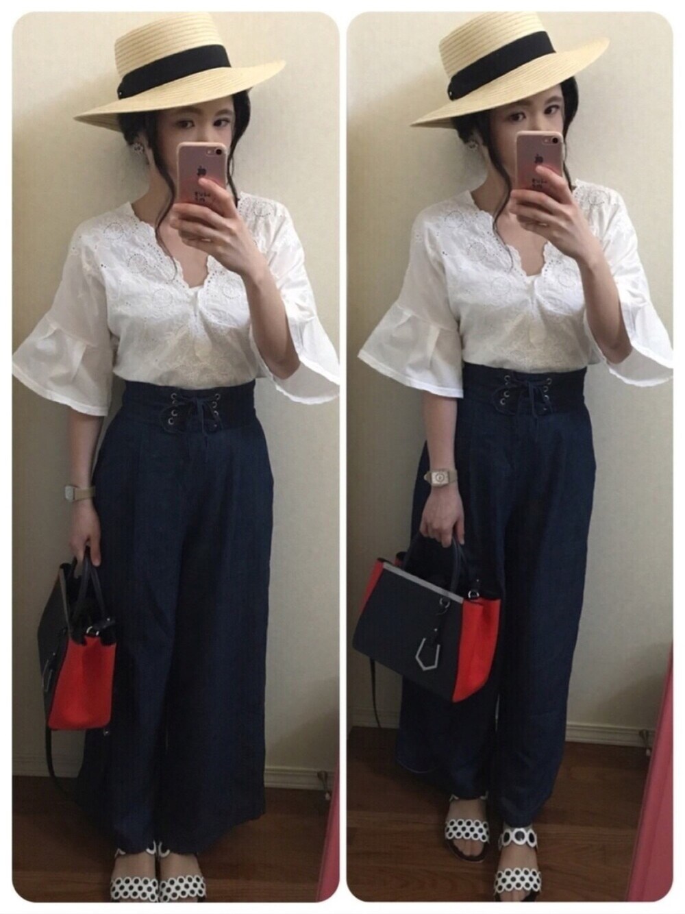 こんばんは😊いつもありがとうございます❣️ 地元買い出しコーデです‼️ 上下しまむらなので、小物は出来るだけハイブランドを😅