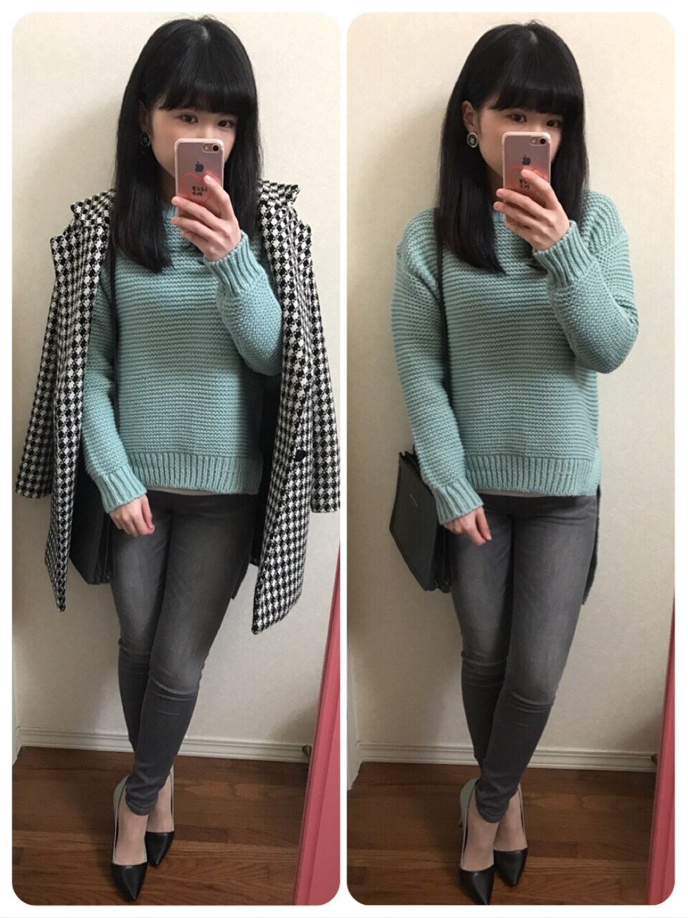 今日ちょこっとだけ外出したときのコーデ❣️春っぽい色の服を着るのが今の気分です😘 最近は雪や雨のせいで、プチプラ靴ばっかり履いてたけど、今日はお天気良かったし雪もほぼ無くなったので、久々お気に入りの靴履けました😊