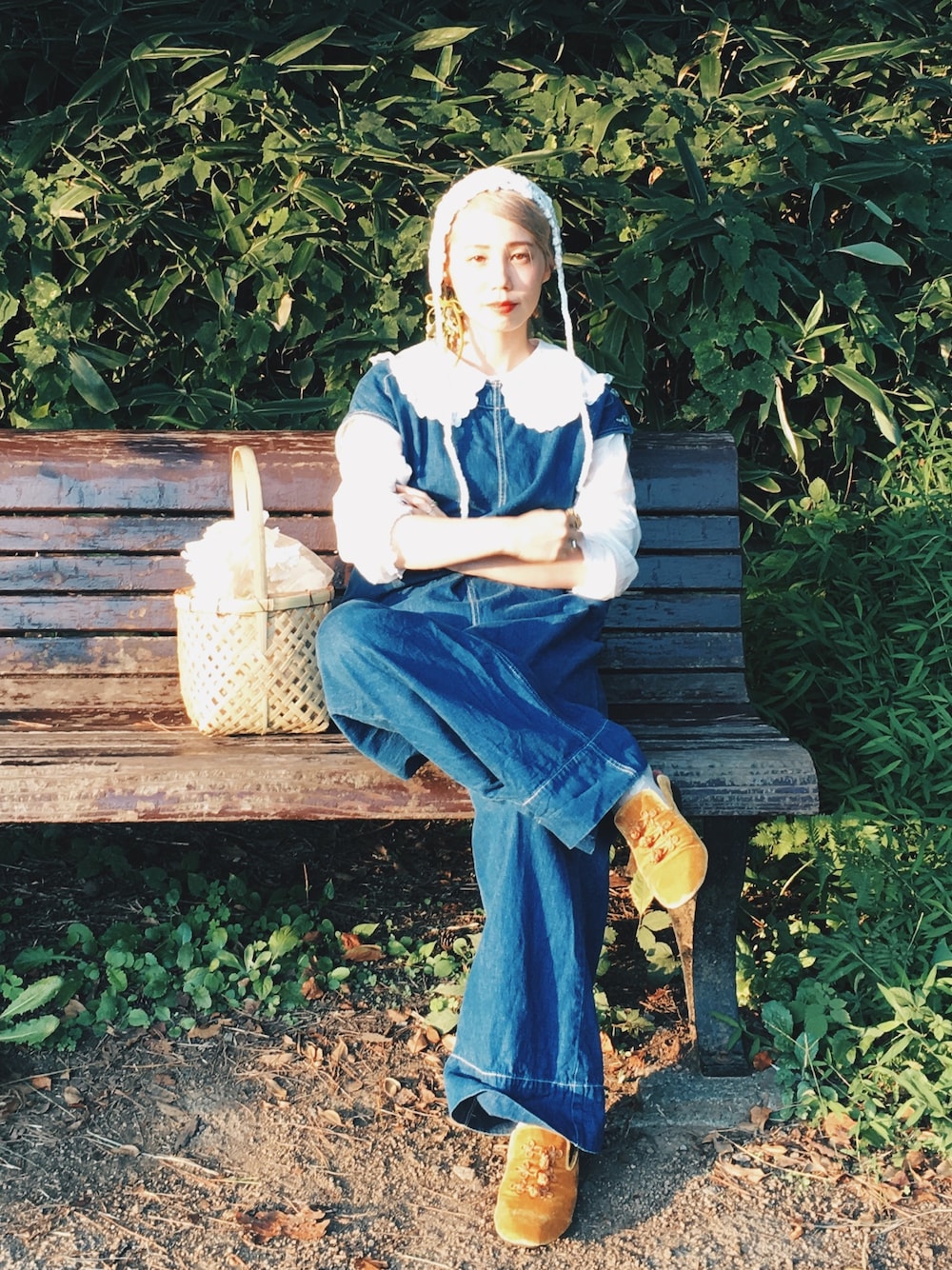 昨日から一気に寒くなりましたね。 写真がたまってしまっているのでまたちょこちょこと書いていきます。 デニムのサロペットに丸襟のブラウスって、きっと何年たっても好きなのでしょう。 バレエシューズを合わせるのもいいですが、 秋らしくベロアのF-TROUPEのシューズを合わせました。 チャイナな感じが可愛いです。 sugriのかごバッグと、ボンネがなんだか柄?あみ?が似ているなあって合わせました。寒くなってきたので、この服の上にモヘアのビッグサイズのニットを羽織るのもいいなあと妄想しています。ファーコートでもいいですけれども。
