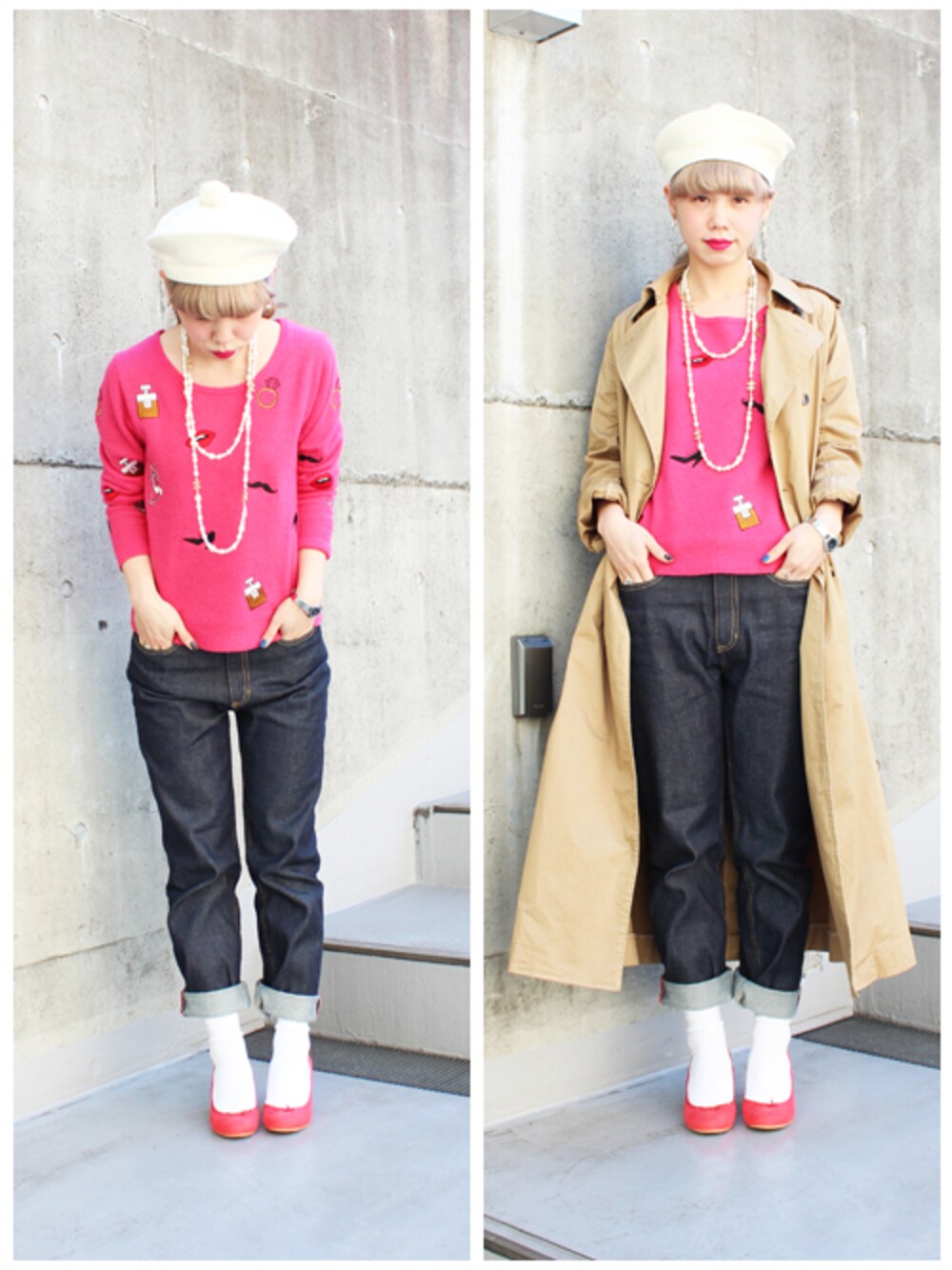 こんばんは。 今日のピックアップがデニム×ヒールだったのでアップしてみます・・ KARINEの「PARIS刺繍」というなんとも可愛いネーミングのニット、よく見るとヒールパンプス、バレエシューズ、香水、リング、ヒゲ、リップともうたまらないモチーフたちが刺繍されています・・・気に入りすぎてピンクとクロの二色購入しました! ということで、パリジェンヌをなんとなーく、イメージしたコーディネートです。 見えにくいと思いますがリップはニットと同じはっきりとしたshu uemuraのピンクをつけています。 トレンチ×デニム×バレエシューズの組み合わせ、王道ですがやっぱり大好きです。 トレンチがマキシで、パンツも大きめサイジング+ぱりっとした質感なので少しヒールがある方がバランスが良いですね。 スキニーだったらフラットのバレエシューズでも良さそうです。 くつ下は靴下屋で購入しました。秋冬仕様でちょっと厚手が可愛いです。 マーガレットハウエルのベレー帽、ポンポンが大きめで、そして何と言ってもさだまらない感じのデザインがたまりません・・クロとカーキも購入しました。3色買いです。ちなみに、ポンポンついていない、リネンのクロも購入しました・・・すごい気に入ってるみたいです・・・ 帽子でちょこっと、マリン要素をプラスしたつもりです。 冬のマリンスタイリング、好きなんです、可愛い! 寒いのに海辺にいって頬と鼻が赤くなってしまっているような子がタイプです!