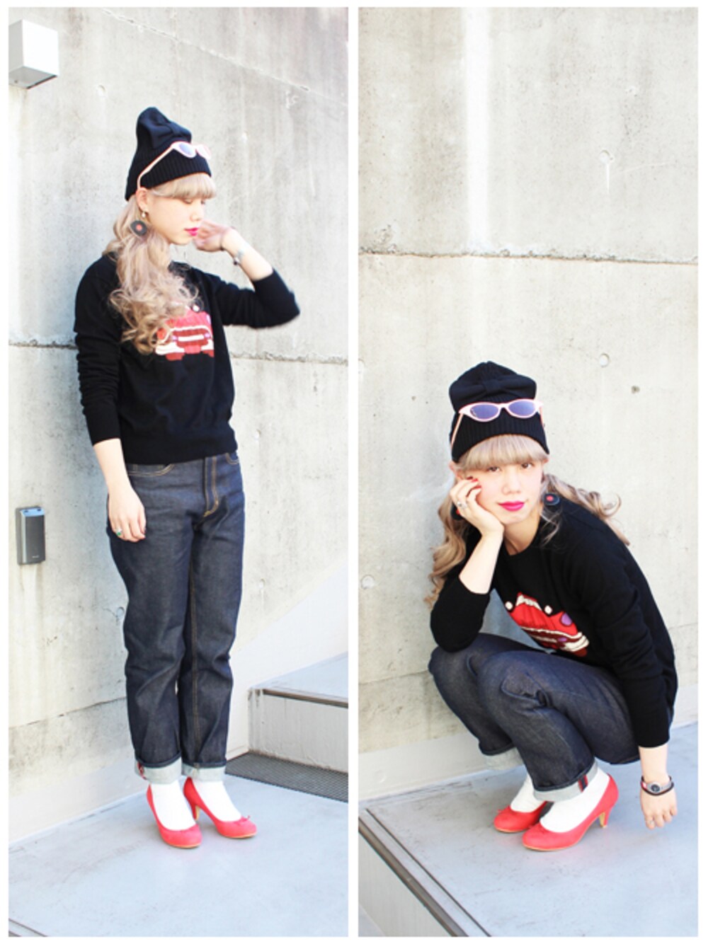 もう一つデニム×ヒールを載せてみます。 デニムを腰で落としてゆるーく履いています。 ニットはCARもチーフがとても可愛いです。 ニット帽もリボンがついていて程よくガーリーです、クロなので特に可愛くなりすぎなくてとても使えます! サングラスは古着屋さんのもので、すごいふざけています・・ うすピンクで、キラキラがふちについていて、極めつけに両サイドにレコードがぶら下がっています・・・こういうふざけているものが凄く好きです、もはや愛しいです・・ このコーディネート、実は裏テーマがあって、またHIP HOPミックスです・・ 全身を黒っぽいアイテムでまとめてかっこ良く、 デニムは腰履きして少しルーズなシルエットに。 ニットのクラシックカーはMVに出てくるイメージです、、 レコードとかキラキラのサングラスとか、、 裏テーマなので自己満足みたいなものですが、、 今帰宅しています。 金曜日だから電車が混んでますね、 お家に着いたらお酒を飲んじゃおうかな。