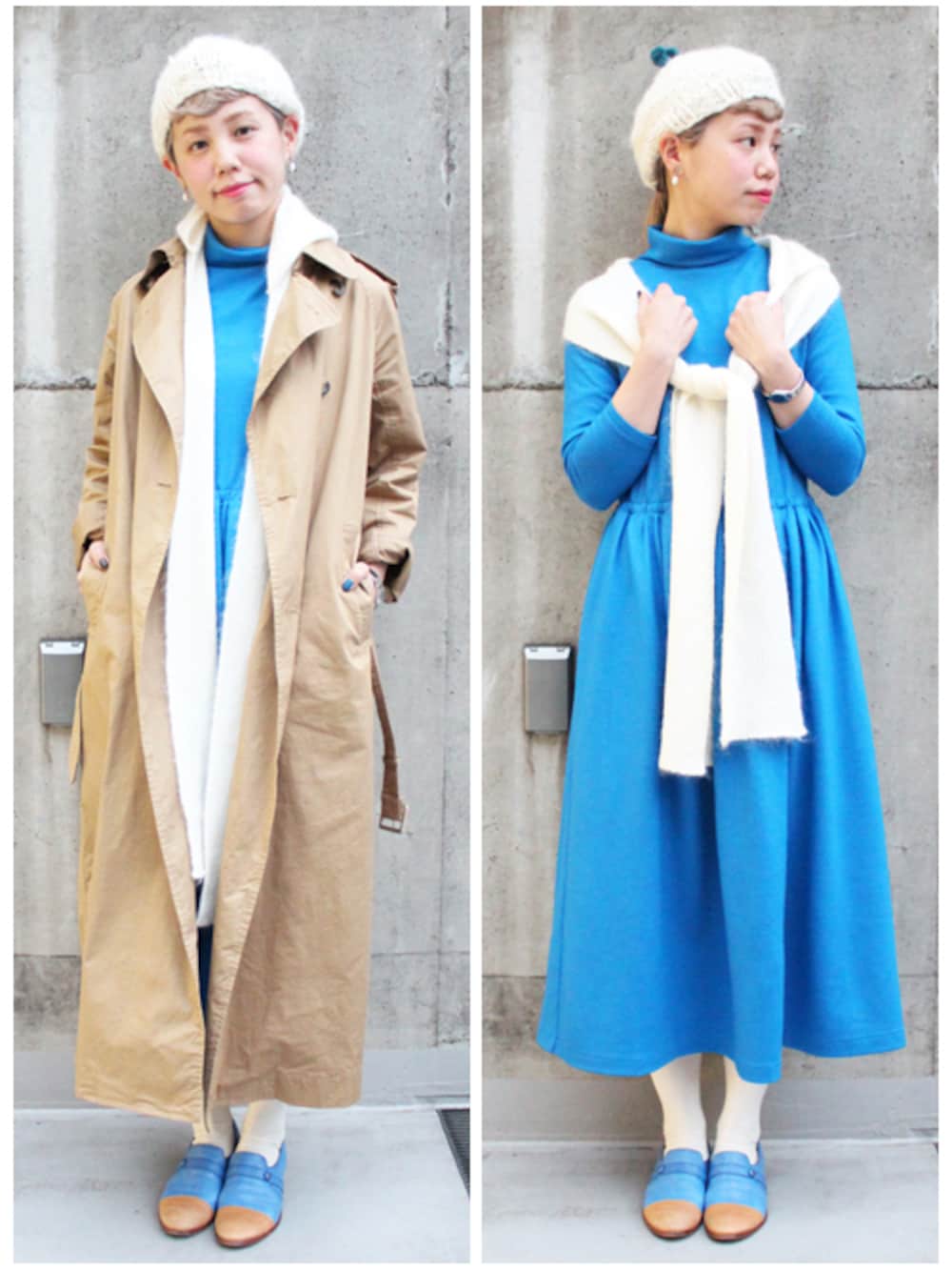 こんばんは。 続けて載せてみます、待ち時間がたくさんあります。 綺麗なブルー?ミズイロ?のワンピースは、1枚でさらっと着ても、レイヤードしても、とっても可愛いです。 綺麗な色でウールでマキシでハイネックでワンピだなんて、もうたまりません、、今日はとにかくワンピを中心にコーデしたので、靴や帽子の飾り部分にも同じようなブルーを合わせました。 ブルーを勝たせたかったので黒はいっさい入れませんでした 白タイツです BEAMS BOYの帽子のちょこりんとした飾り可愛いです、よく掴まれます。どんぐりみたいで可愛い!今年はちょこりんが付いた帽子ばかり買っています! 靴は珍しい配色で気に入ってます、昔bulle de savonで購入しました〜白×黒も持っています。 今年購入したcikolataのマフラー、なんとフードがついてます、、赤ずきんちゃんみたいで可愛いです、、ぐるぐる巻にしても、そのまま垂らしても、リボン結びしても。自由です。 またKARINEのトレンチコート着てますが、なんだか青×白×ベージュでまとまりある感じになって嬉しいです。仕事用のかばんは白ですが、遊びの日だったらピンクとか赤とかのミニバッグ差し色にしても可愛いな、でも突然のゴールドとかでも好きです。 今日は甘くなりたくない気分だったので、髪はストレートで後ろで一つむすびにして、前髪を眉上にしてコテで外ハネにして男の子っぽさを少し出してみました。(でもふわふわ〜に巻いて下ろすのも嫌いじゃないです、、好きです、、首もと温かいですし)コートから覗くフード付きマフラーのフード部分も良い感じに男の子っぽさ出ている気がします 帽子被れば、前髪短くしやすいのでいいですね。 帽子の中はぐちゃぐちゃなので注意です。 そんな火曜日でした!