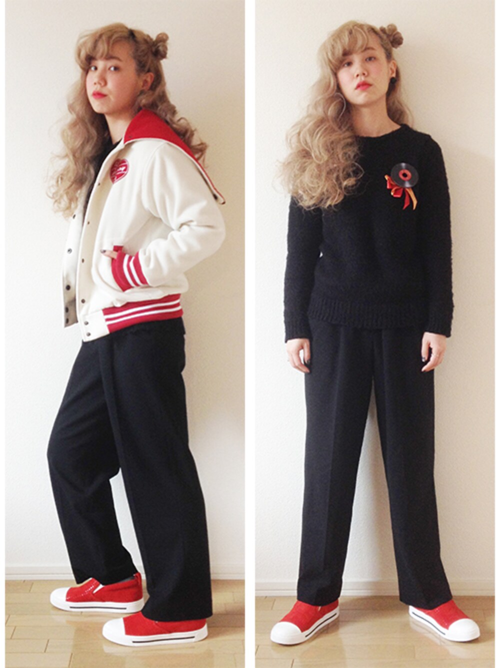 こんばんは〜 お風呂に入ってアイス食べながらテレタビーズを見てました。 あとはもう寝るだけです。 今年はオールブラックが好きです。 形がきれいなEbonyのもこもこニットに、ルッキリルのワイドパンツを合わせました。 シンプルですが、ニットとパンツの質感が絶妙で好きです。 そして大好きなあゆちゃんのAymmyのセーラーカラーのスタジャンを合わせました。 前からみても後ろからみても可愛いです! 軽くてあたたかくて、とても使えます。 スタジャンにあわせて、差し色は赤にしました。KLOKAのレコードブローチはリボンが赤系でグラデーションになっていて可愛いです。 MARC BYのスリッポンはレザーの朱赤がきれいです。 黒に赤をあわせる時、真っ赤ではなくオレンジ系の赤を合わせればコントラストが激しくなくて、今日のようにスポティーなスタイルでもかっこよくなりすぎません。 逆にガーリーなスタイリングの時は、黒に真っ赤をあわせたくなります、、 ちらっと見える水色のソックスで抜け感を出しました。 セーラーカラーだったので、片方だけちょっとお団子にしてみました。あの方をイメージしました。 裏テーマがおしゃれになりたい不良だったのですが、なんとなーく、、伝わります、、か? 眠いです、明朝は6時台に家をでます 寒くて眠そうです、早く寝なきゃ、、、 おやすみなさい