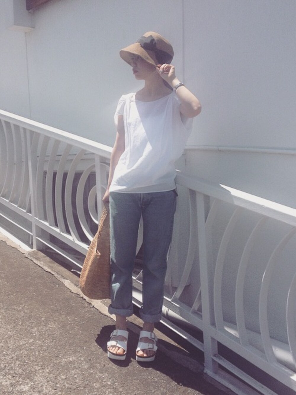 こんばんは。 モーニングに行った時のコーデです。朝ごはん食べに行くだけなのでシンプルな服にしました。 nitcaの3年ほど前のブラウスは実家に置いていたので着てみました。 首もとの空き具合がお気に入りです。そして合わせやすい! よく着ているAPCのデニム合わせました。いつもは腰まで落として穿きますが珍しくウエストでベルトでとめてみました。 サンダルは御殿場のアウトレットの靴屋さんで6000円くらいでした、安いー!今年っぽいので沢山履きたいです。軽くて歩きやすいです。 帽子と鞄は母に借りました、帽子がとてもとても可愛くて欲しくなりました、、、 リボン可愛い、、、 今年は紫外線対策という名目で帽子をたくさん買いたいです。 白いブラウスにうすい色のデニムって日差しにあいますねぇ。 特にテーマはありませんが、とても天気の良い朝だったので日差しに会うようなコーデにしました。 今帰っています。 1週間が始まりますね、今週も頑張りましょうー!!