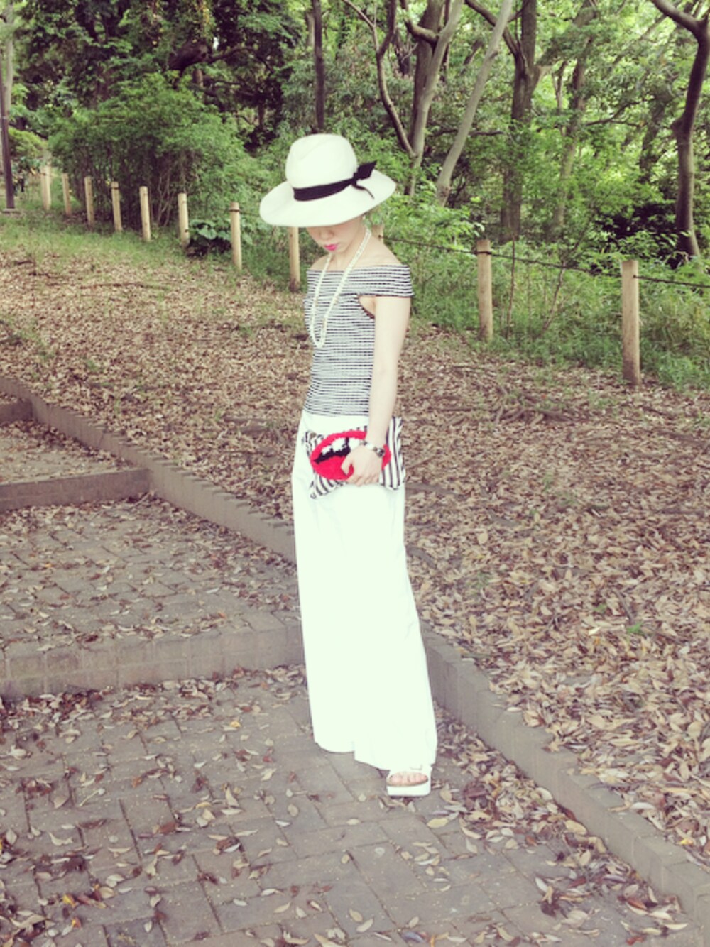 こんばんは。 パンツコーデの続きです。 フルレングスのワイドパンツが欲しいなあと思っていてMy Fav.で最近購入しました。 とてもいいワイド感です、、 他の色も買いそう、、 ちょっとマリンな格好にしてみたかったので、snidelのオフショルダーを合わせてみました。 クラッチはよく使っているKARINEのです、たっぷり物が入るし柔らかいので持ちやすいです、そして何よりリップのモコモコがツボすぎて、、 帽子とサンダルは最近のヘビロテたちです。 見ての通りテーマはトリコロールとマリン、という王道なコーデだったので、日光浴散歩していたので港にも行ってたのですが公園で撮りました、、 海なのか山なのかよくわからない感じが嫌いじゃないです、、 ボーダーも白もネイビーもワイドパンツもサンダルも、どう転んでも海に似合うんだなぁと思いました。 今度は思い切り山っぽいかっこうして港で撮りたいです、、、 それにしても5月でこのかっこう、真夏に何を着ればいいのでしょうか、焼け焦げる?溶ける? 今日はもう一つ更新します、 ではまた後で、、