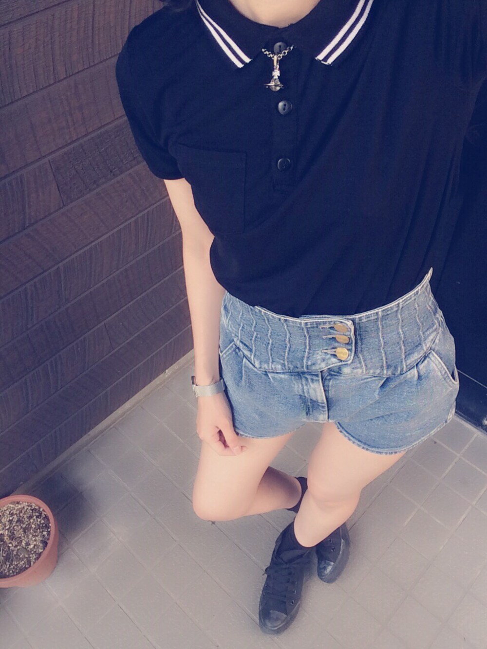 みなさんこんばんは◝( ´☁︎` )◜ 今日のコーデ! っていうわけでは無いんですが 古着屋さんで一目惚れしたLily Brownのハイウエショーパンがメインですᕙ(⍢)ᕗ 女の子な形だから女の子っぽく着てパンプスとか合わせようと思ったんだけど今回はカジュアルにしてみたー! セールで1600円だったTWNROOMのポロシャツ!生地が柔らかくてすっごい着心地いいのー そして大好きな黒コンバース。 ポロシャツのボタン開けようか閉じようかすっごい悩んでどっちも好きだな〜って決めれなくて、とりあえず閉めた! 今回も相変わらずのシンプルコーデ。 そしてわたしのこだわり?はゴツめのアクセサリーᕙ(⍢)ᕗ アクセサリーは色々つけるのがすき。 でもちゃんとまとまるように。 たまにメンズかと思われる時計に、 やっぱオーブって目立つよね!っていうネックレスに、 左手の中指のリングと 右手のオーブがついたブレスレット 全部Vivienne♡ そしてすっごい華奢なネックレスと 右手の薬指のペアリング 左手のピンキーリング この3つはダイヤ! ダイヤのキラキラ感ってすごい上品でVivienneと一緒につけてもケンカしないで馴染んでくれる٩( ´◡` )( ´◡` )۶ 写メ撮りたかったけど時間がなくて撮れなかったのでまた今度! そういえば更新してなかった間にフォロワーさんが100人を越えました!! 本当にありがとうございます(;_;)♡ セーブとかコメントとか気軽にしてもらえたら嬉しいです♡ みなさんこれからもよろしくお願いします!