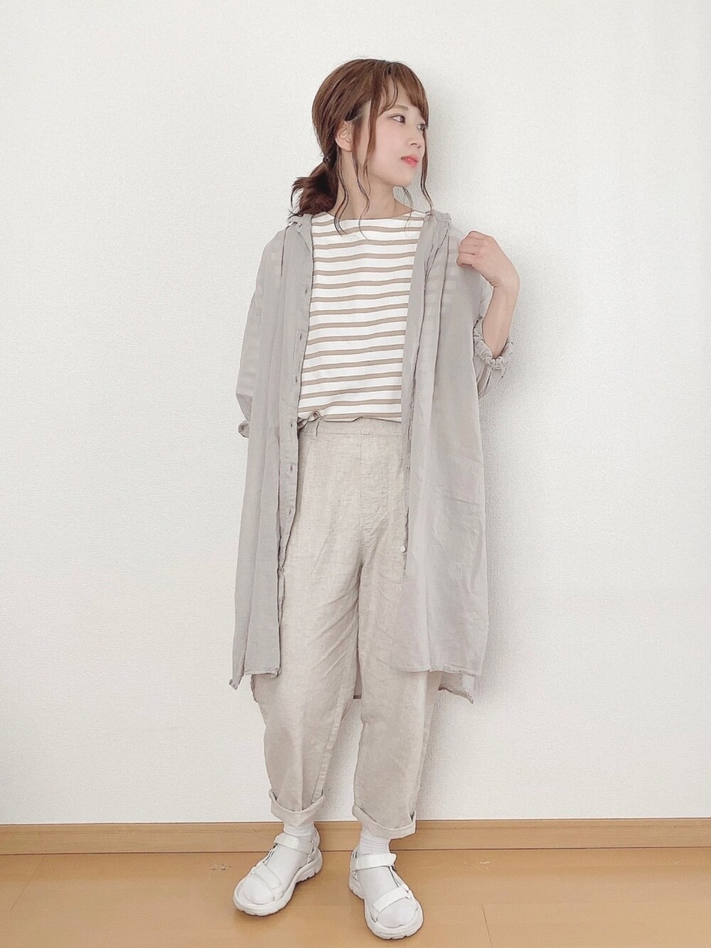 くぼちゃん。のその他パンツ「【リンネル6月号掲載】コットンリネンイージーテーパードパンツ」を使ったコーディネート