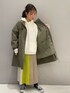 ◆アウター:Mサイズ メンズアイテムです。 ミリタリーテイストのアウターはカジュアルコーデの定番に1つは持っておきたいですよね! キルティング素材のライナー付きで、取り外すと春や秋のアウターとしても使えるアイテムです◎ ライナー単体での着用も可能で着回し力抜群です! ◆トップス:Mサイズ 着心地がとても軽やかなダンボールポンチ素材のパーカーです。 ダンボールポンチ素材はしわになりにくく、ニットと違い毛玉も気にならないのでお手入れがとても楽ちんです! 保温性にも優れており、軽くてレイヤードがしやすいので今の時期にもオススメ◎ メンズアイテムでゆるっと着用しています! ◆ボトムス:Fサイズ マルチストライプが目を惹くスカート。 ニット素材なので一気にコーデに温かみがでます。 ウエストゴムで楽チンなのもオススメポイント! 少し長めなので低身長さんは折って履くのがマストかと思いますが、こちらのスカートは折っても形が崩れにくいのでそのあたりも安心です◎