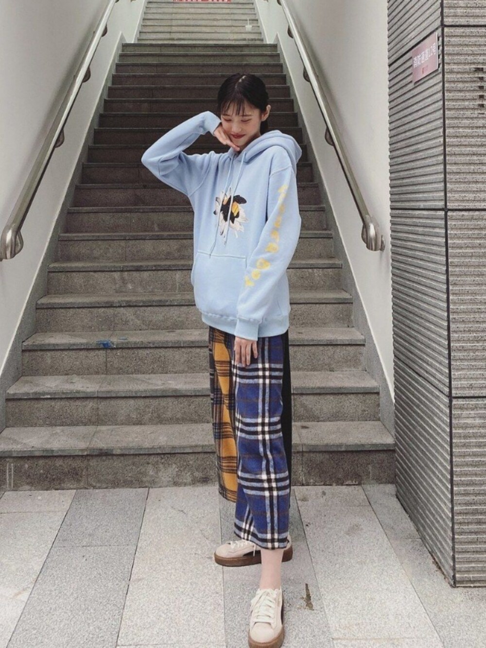 🧸ootd丨日杂风colorful格纹小蜜蜂🐝 # GOLF 小蜜蜂卫衣 # 搭片拼接格纹裤 # Puma Suede Platform 蕾哈娜松糕鞋 是我爱的日杂风!卫衣和多色拼接的格纹裤各有颜色呼应哈哈哈,格纹裤前面的搭片为了拍照方便被我塞到卫衣里面去了💨鞋子的配色也能很好地呼应。美中不足就是缺点drama的配饰哈哈哈,还有可以加个链条包什么的💫