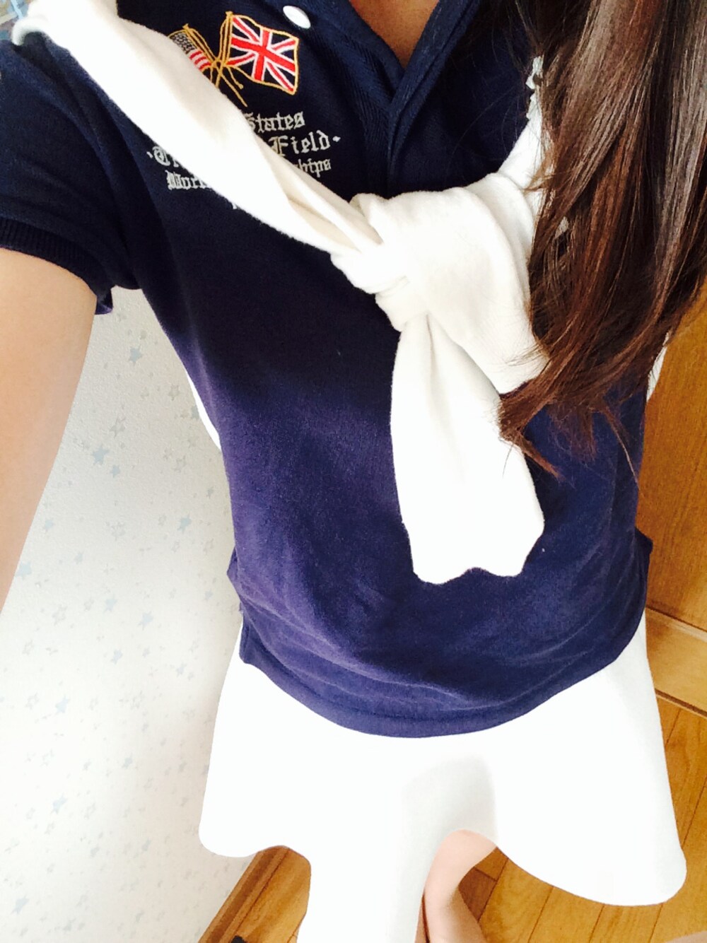 *ホワイトフレアSK *ポロシャツ *オフホワイトのカーデ