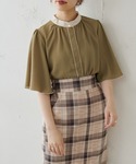 アコ@骨格ストレート(natural couture)のシャツ/ブラウス「パール釦ポイントバイカラーフレア5分袖ブラウス」を使ったコーディネート