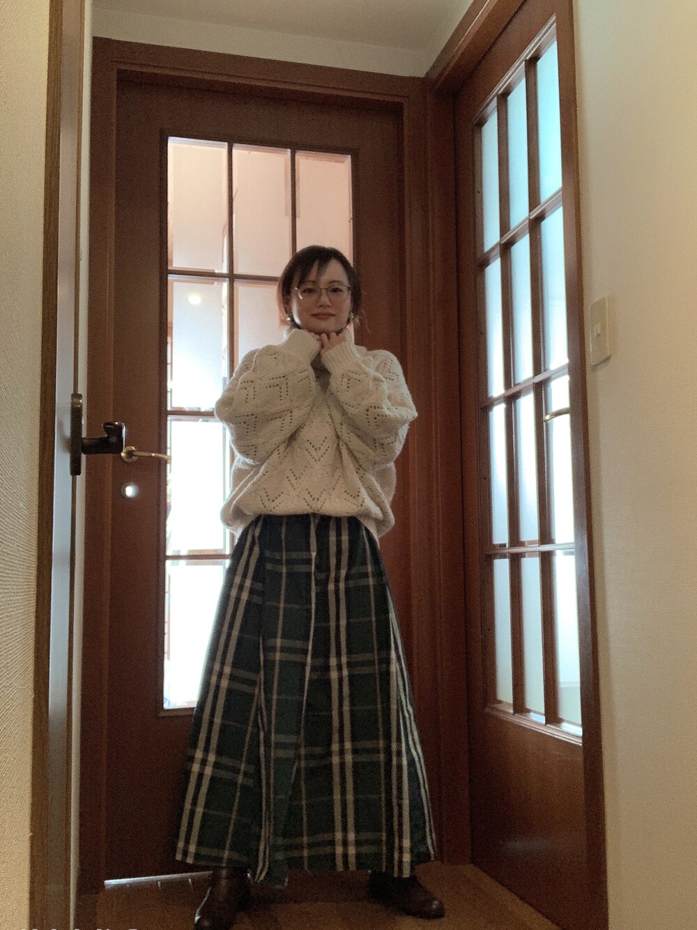 ungridの色違いで買ったニット。グリーンのスカートは何にでも合うから、ついつい着ちゃいます。「ざっくりニットにロンスカ」のスタイルが、流行り云々関係なしに大好きです。