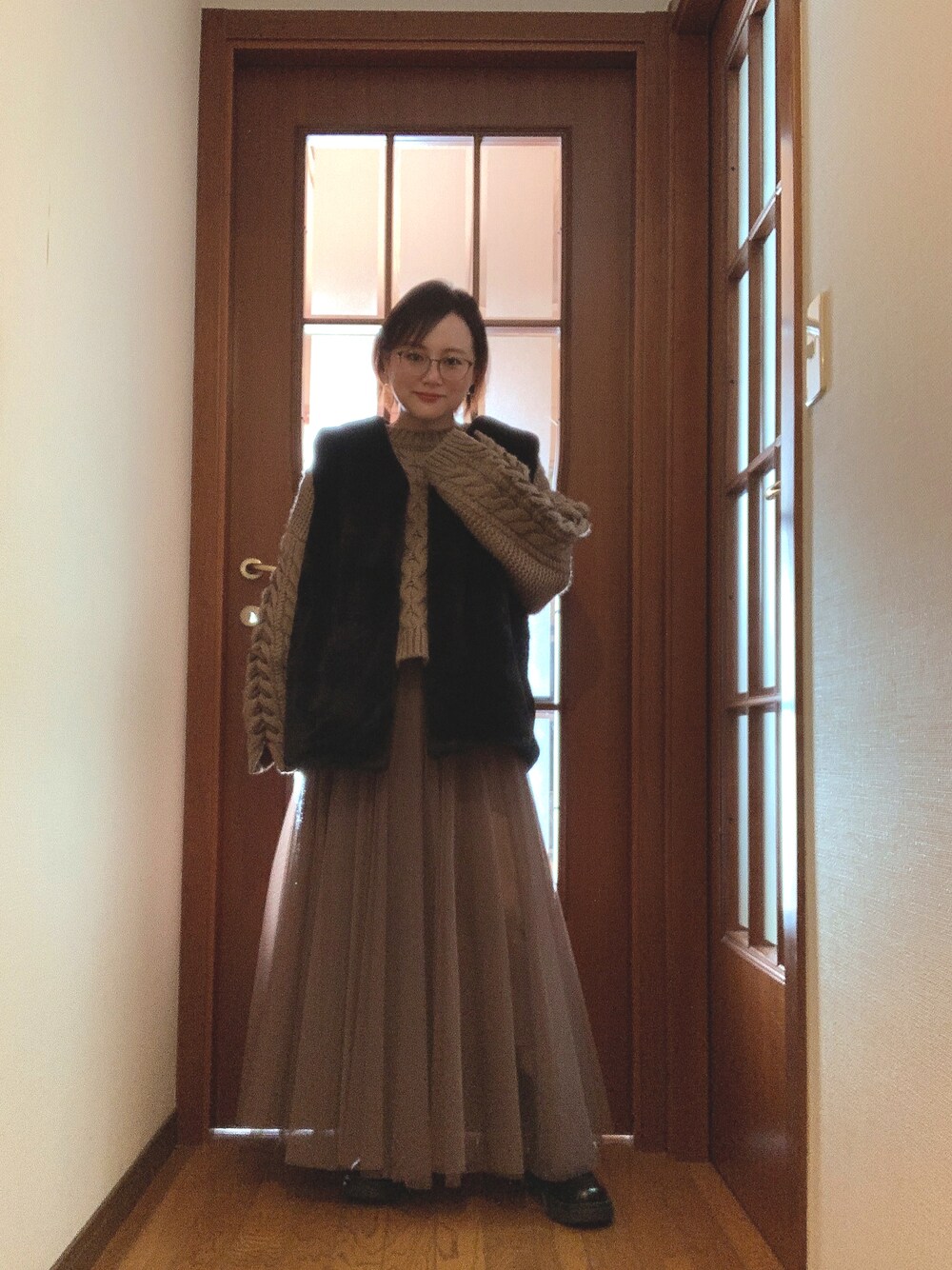 以前のワントーンコーデに、ファーベストをプラス。