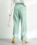 ベージュとミントグリーンの淡いトーンコーデ。 Andemiuのギャザーシューズは、かかと部分をあえて踏んで、ミュールのようにして履いてます。