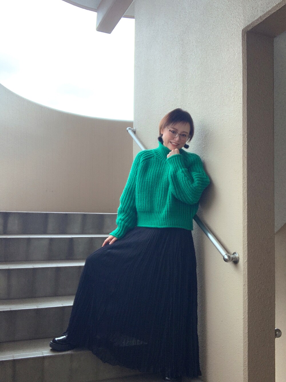 H&Mのローゲージニットでぬくぬくコーデ。マスクが引っかかりやすいので、随分つけてなかった、まっくろくろすけみたいなピアスを久々に。