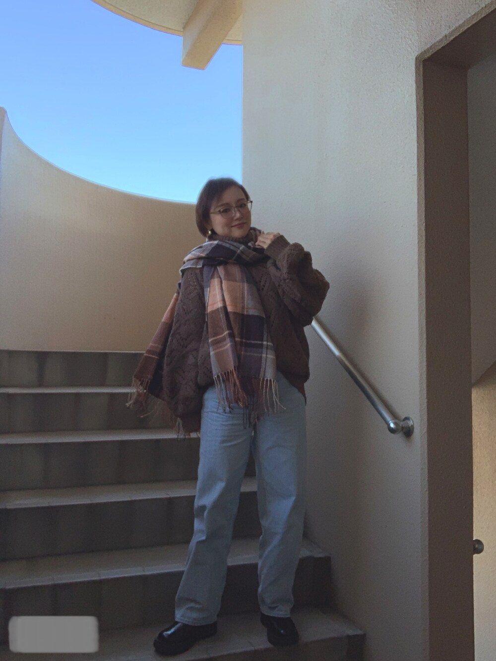 買い出し𝐃𝐚𝐲なので、動きやすい楽ちんデニムコーデ。風が冷たいので、マフラーを。オレンジが可愛くて我慢できず、買ってしまったマフラー。でも、これが今季買うラストマフラー(だと思います。)
