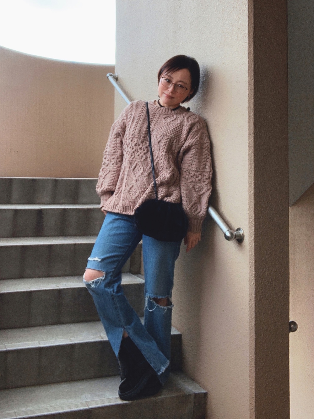 ベージュ×デニム 色んな編み目のニットは、デザインももちろん好きなのですが、 着丈が少し短め & サイドスリットがあるので、 おチビなわたしでも、 フロントインせずに、そのままストンと着ても、 バランスよく着るとこができます✨️ 今日は上下ともungridにしました。 このデニムは、裾のスリットが、外側ではなく 内側にあるデザイン。 このタイプは、意外と他になくて。そこもお気に入りです。 コロンとしたファーショルダーは、 小さく見えて意外と収納力があるのですが。 調子に乗って入れ過ぎると、 閉じてもすぐに「パカッ」と口が開いてしまいます🤣 (ちなみに、口の部分はマグネットになってます) そして、調子に乗って入れ過ぎると、 見た目が、中身の沢山詰まった餃子🥟みたいに なります🤣🤣 スウィーツは、ファミレスで食べた 釜焼きパンケーキ🥞 わたしはきな粉テイストにしたのですが、 上にのってるきな粉のホイップクリームが とにかくおいしくて😋 今度うちでも、真似して作ってみようかなって、 思ってるとこです。