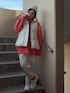 オレンジ×ホワイト🧡🤍 哺乳瓶🍼ニット帽再びー 前髪だけ整えればよいから、 当たり前ですけど、帽子はよきですね✨️ しかも、おしゃれさ⤴︎ ⤴︎になれるし✨️ このニット帽のコーデ、 この日初めて主人に見せたので。 スナップボタン留めて、ちゃんと哺乳瓶🍼スタイル見せときました。 めちゃ笑ってました𐤔𐤔𐤔𐤔 小窓は、激カワねこちゃんの缶入りチョコ🍫