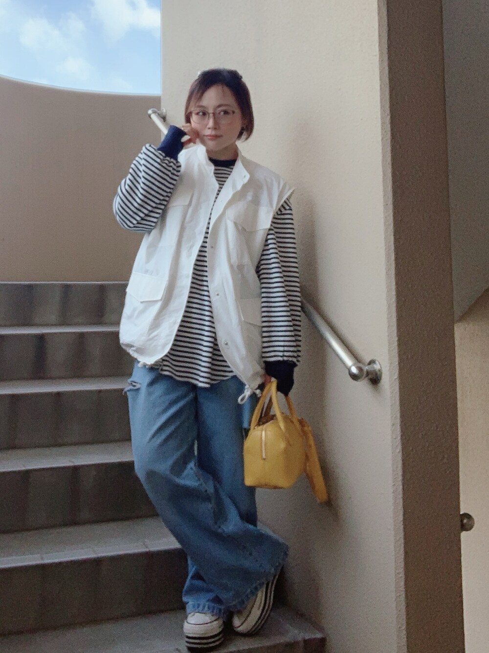 akocoa♩¨̮·͜· ︎︎ ︎︎のベスト「【WEB限定】ナイロン混ミリタリールーズベスト」を使ったコーディネート