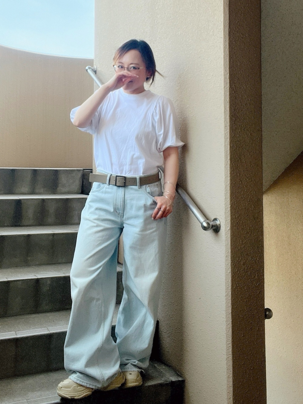 淡色シンプルコーデ 📷ないけど、バッグはキャンパス地のベージュに アクセはシルバー この日も激暑 📷見てもわからんのですがー 熱風吹いてますー🥵 秋早く来てー‼️(。>人<)