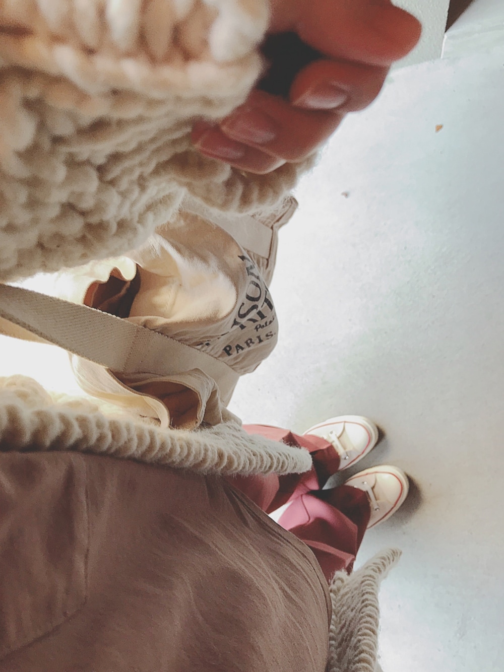 ニットカーデいらずのあたたかさでした𓅿 くすみピンクのパンツお気に入り