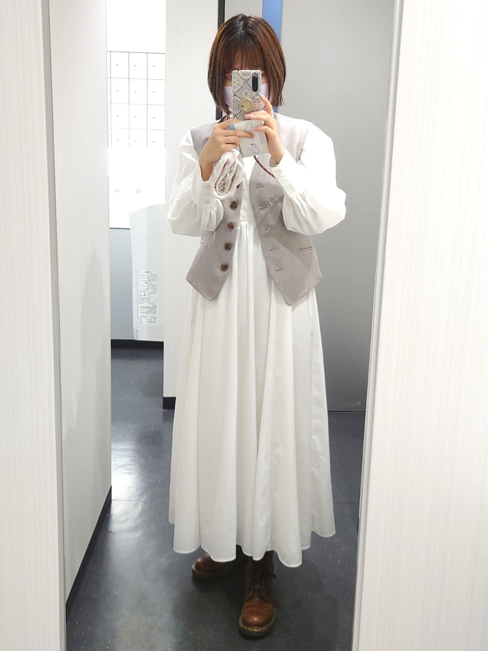ウォッチありがとうございます! 仕事納めだった日。 仕事終わったあと、ご飯に行く予定だったので そんな感じのコーディネートでした。 しかし風邪引いてキャンセル…。 白いワンピースは可愛いけど ちょっと姫感強いから ベストとかカーディガンでマイルドに。