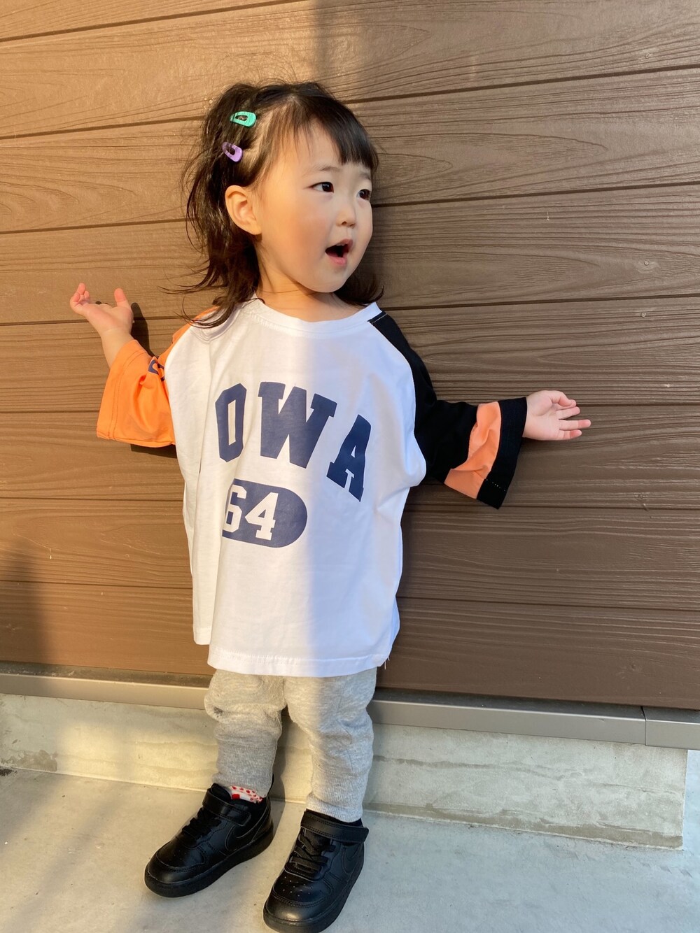 . . 「ママお母さ〜ん」となんとも独特な呼び方をしてきます😂 オーバーサイズのTシャツはスウェットパンツを合わせてゆるめに🖤ヘアピンでカラフルにしてみました🖤 .