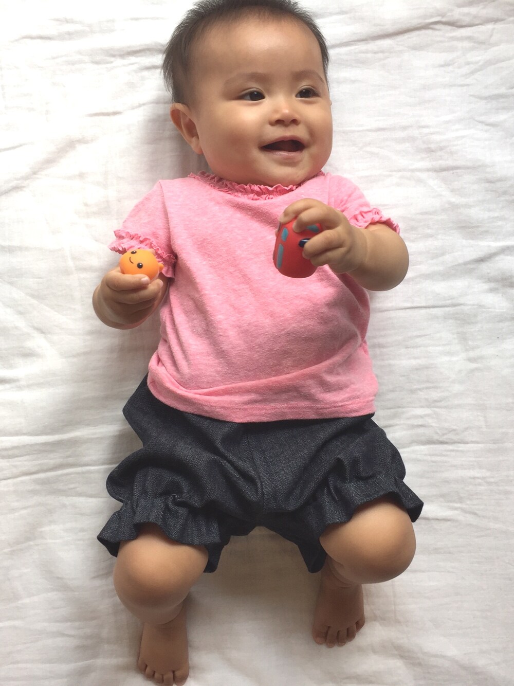 ズボンを作りました❤︎ デニム生地でかぼちゃパンツ(o^^o) おしりフリフリしながらハイハイする姿可愛いです!