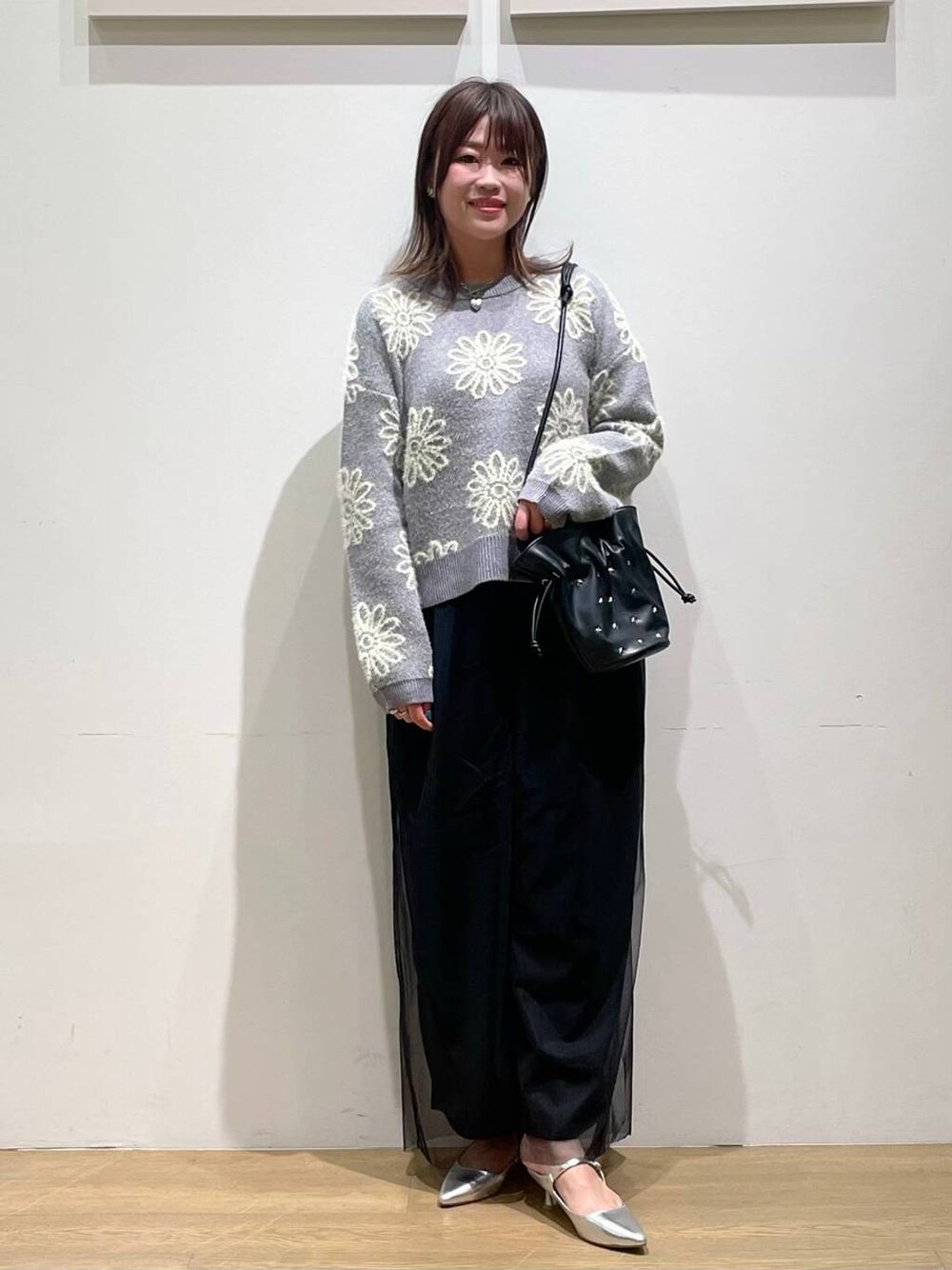 akari(BAYFLOW モレラ岐阜)のショルダーバッグ「[マグホック付き]スタッズ巾着ショルダー」を使ったコーディネート