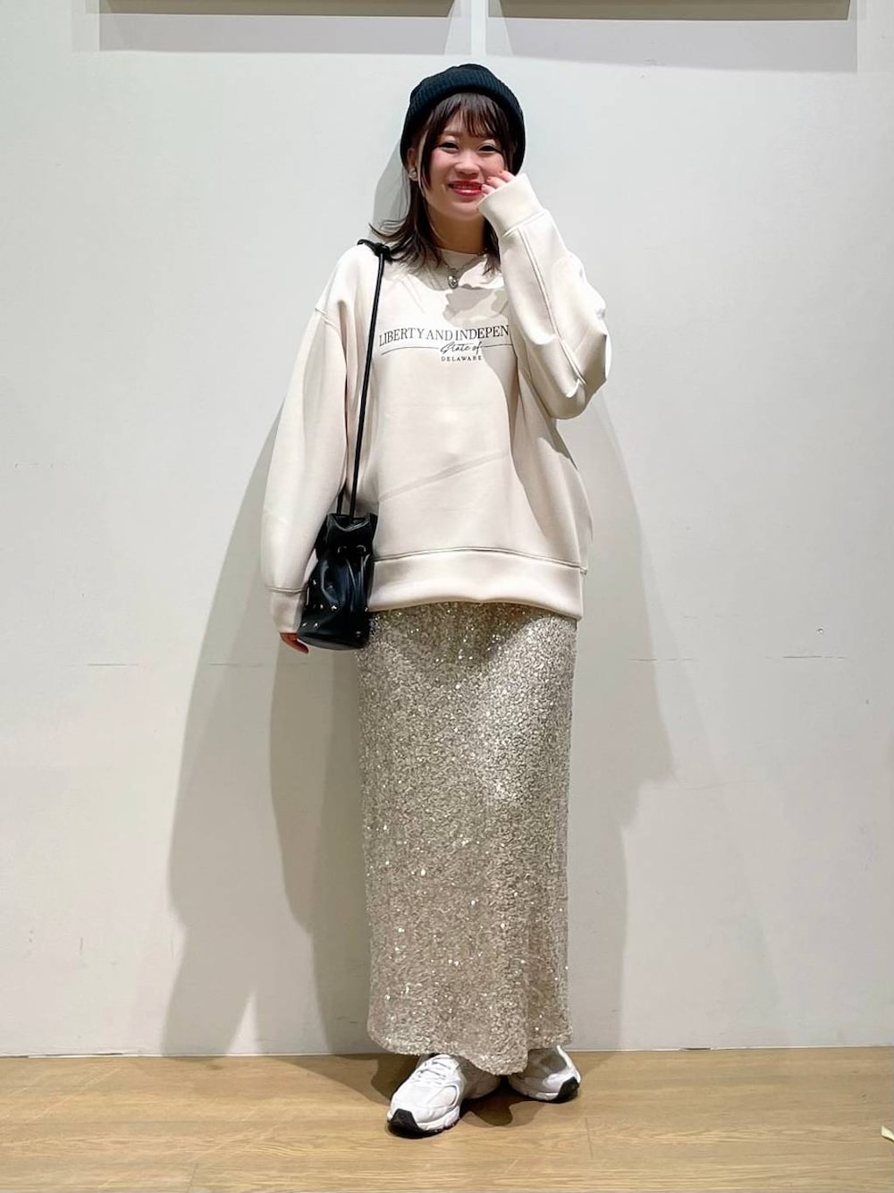 akari(BAYFLOW モレラ岐阜)のショルダーバッグ「[マグホック付き]スタッズ巾着ショルダー」を使ったコーディネート
