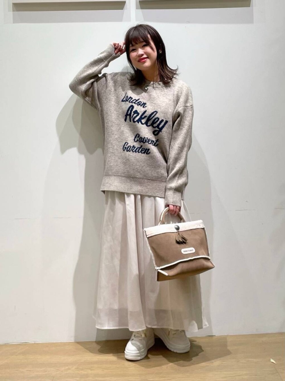 akari(BAYFLOW モレラ岐阜)のスニーカー「[抗菌消臭付き!厚底でスタイルアップ]ファットシューレーススニーカー」を使ったコーディネート