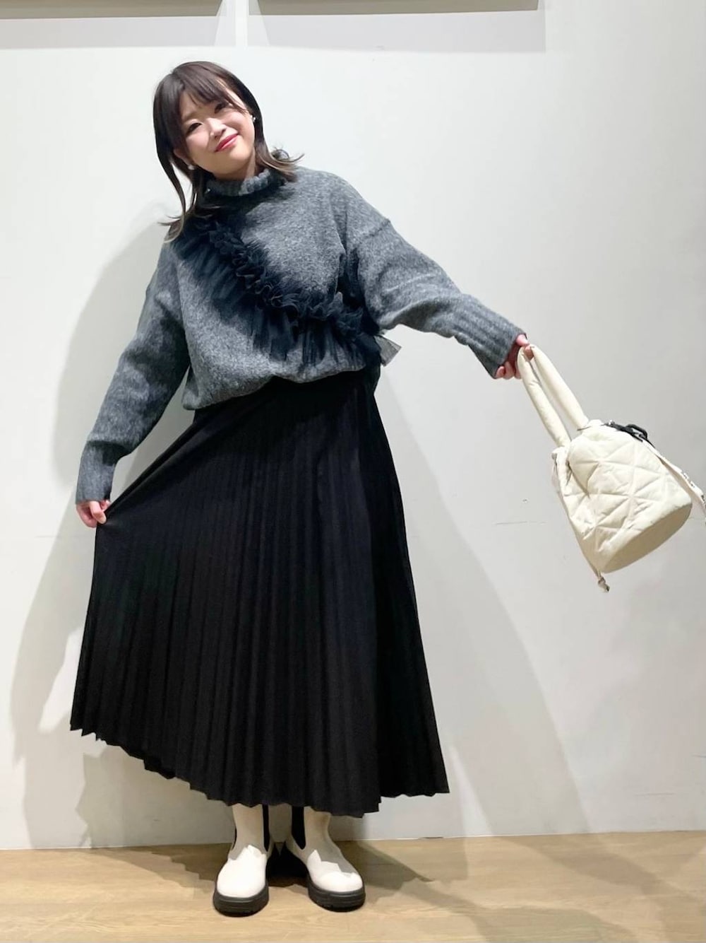 akari(BAYFLOW モレラ岐阜)の付け襟「ラッフルストール付け襟」を使ったコーディネート
