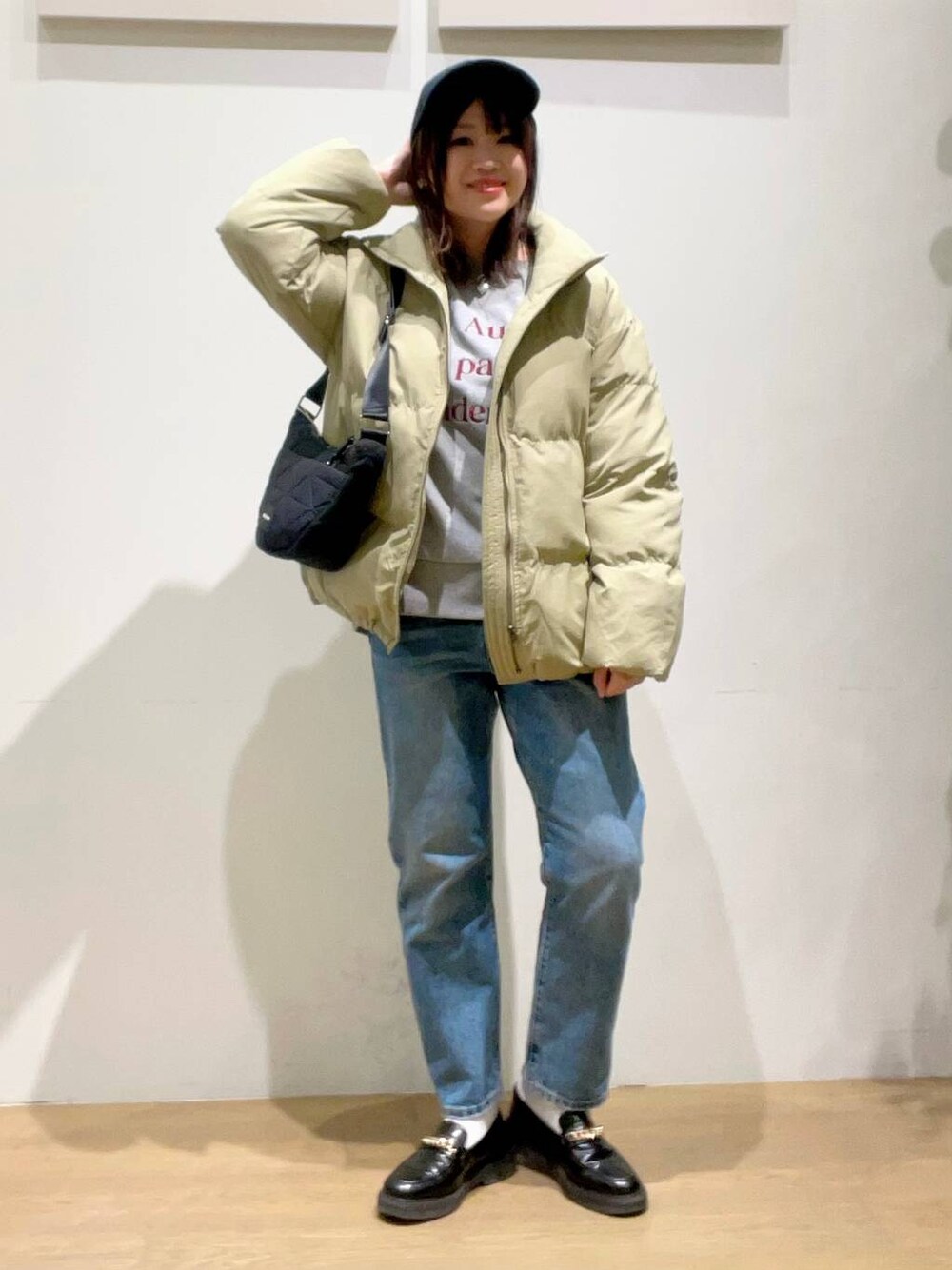 akari(BAYFLOW モレラ岐阜)のショルダーバッグ「カタオシハーフムーンショルダー」を使ったコーディネート