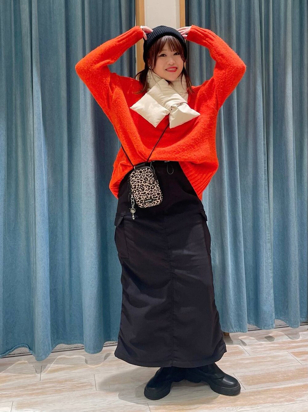 akari(BAYFLOW モレラ岐阜)のニットキャップ/ビーニー「LIKEYEETワッフルニット」を使ったコーディネート