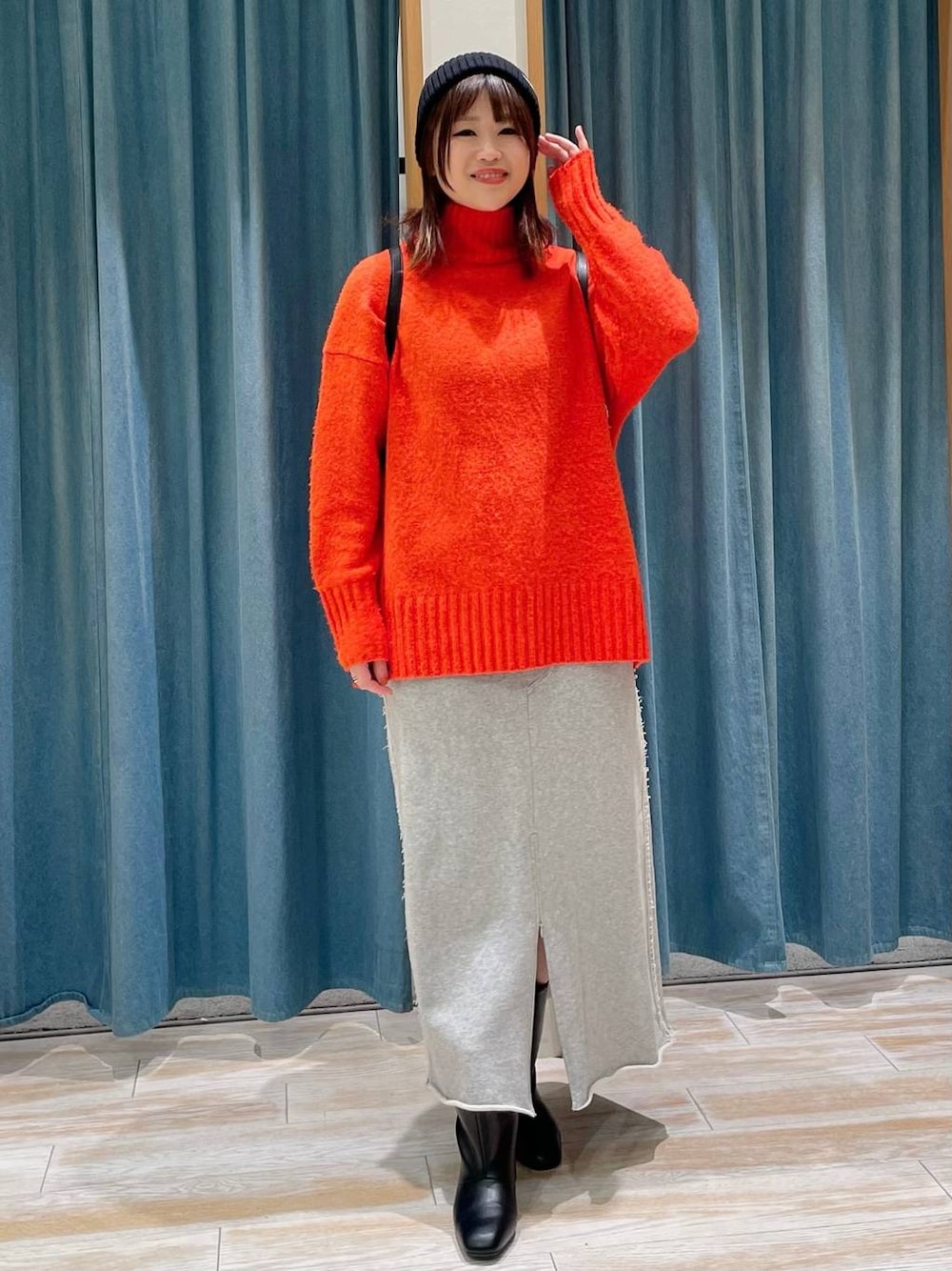 akari(BAYFLOW モレラ岐阜)のニットキャップ/ビーニー「アクリルニットワッチ」を使ったコーディネート
