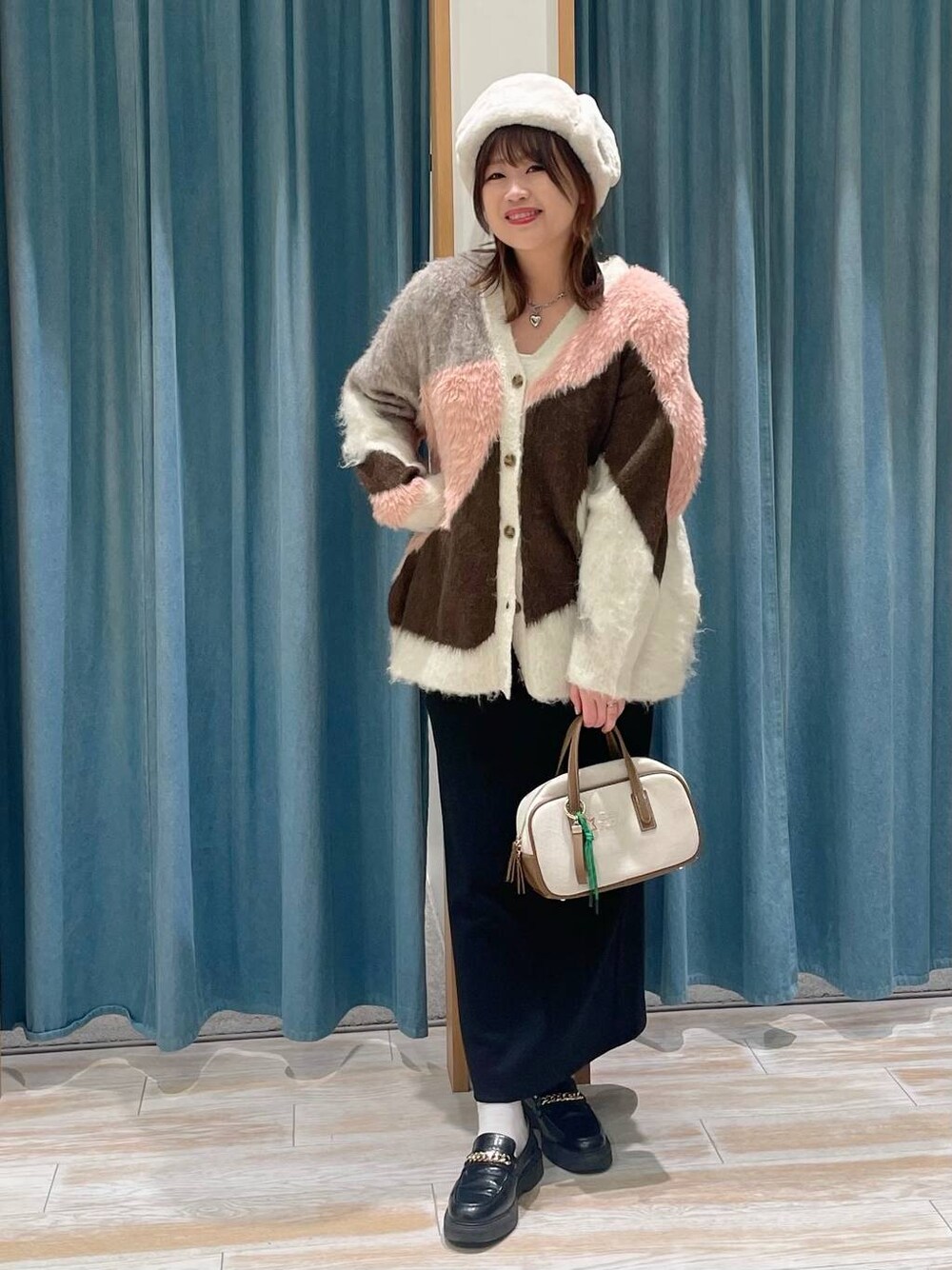 akari(BAYFLOW モレラ岐阜)のカーディガン/ボレロ「[リニューアルして今年も登場!!]ニュアンスパターンカーディガン」を使ったコーディネート