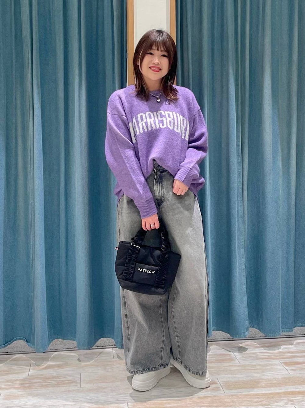 akari(BAYFLOW モレラ岐阜)のスニーカー「[抗菌消臭付き!厚底でスタイルアップ]ファットシューレーススニーカー」を使ったコーディネート