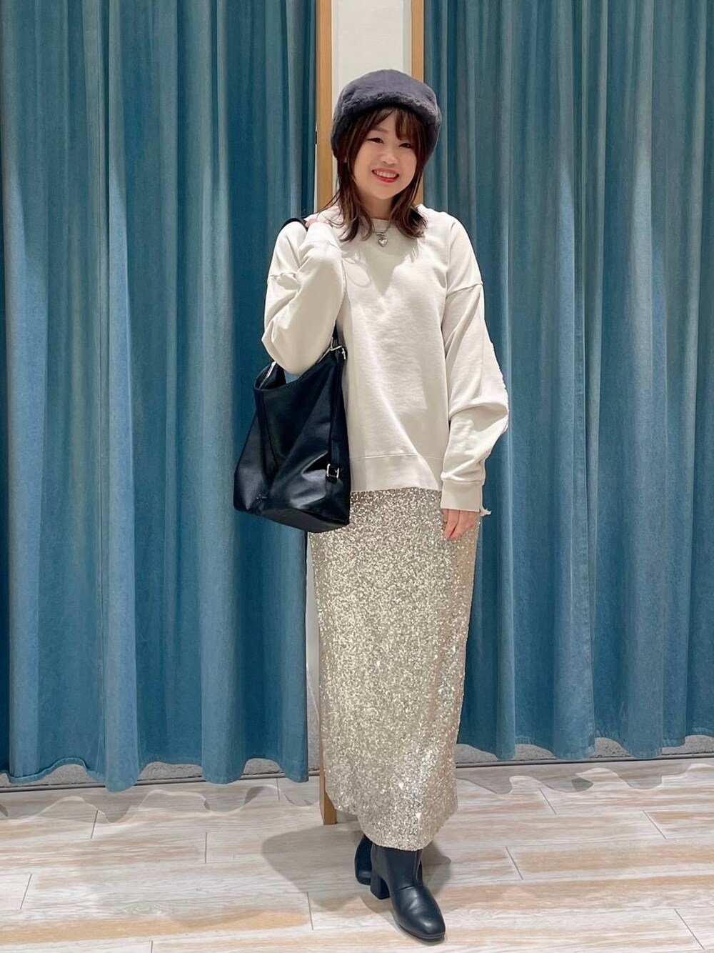 トップスは シンプルなデザインながら、 異素材感とフリンジが アクセントになったプルオーバースウェット🌈 スカートをスパンコールでキラキラにしても かわいいですよ🌼